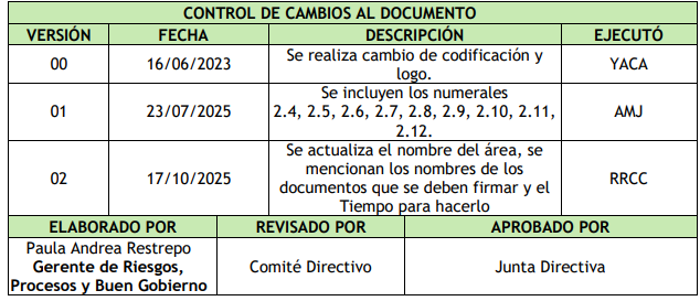 Es de aclarar que el comité de riesgos, en caso de no llegar a un consenso procederá a comunicarse con el representante legal para que este actúe como mediador y/o en su defecto si la situación se considera critica, se deberá solicitar una reunión a la junta directiva.